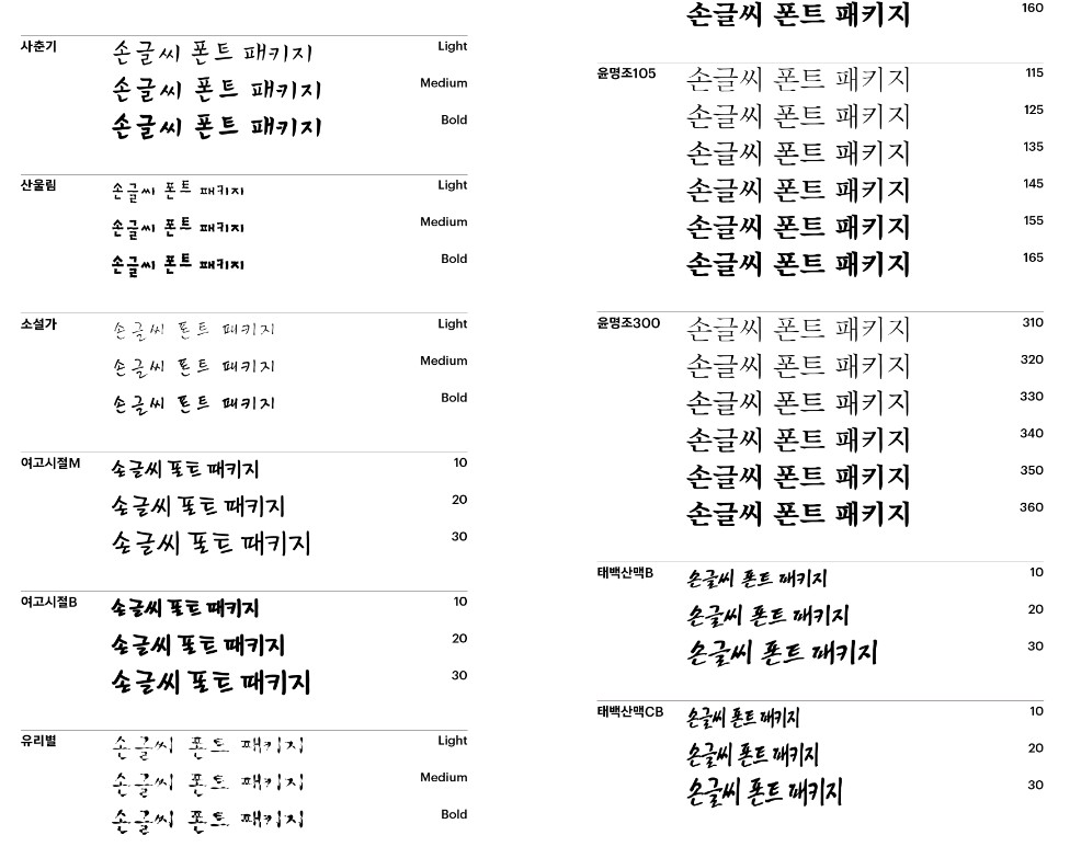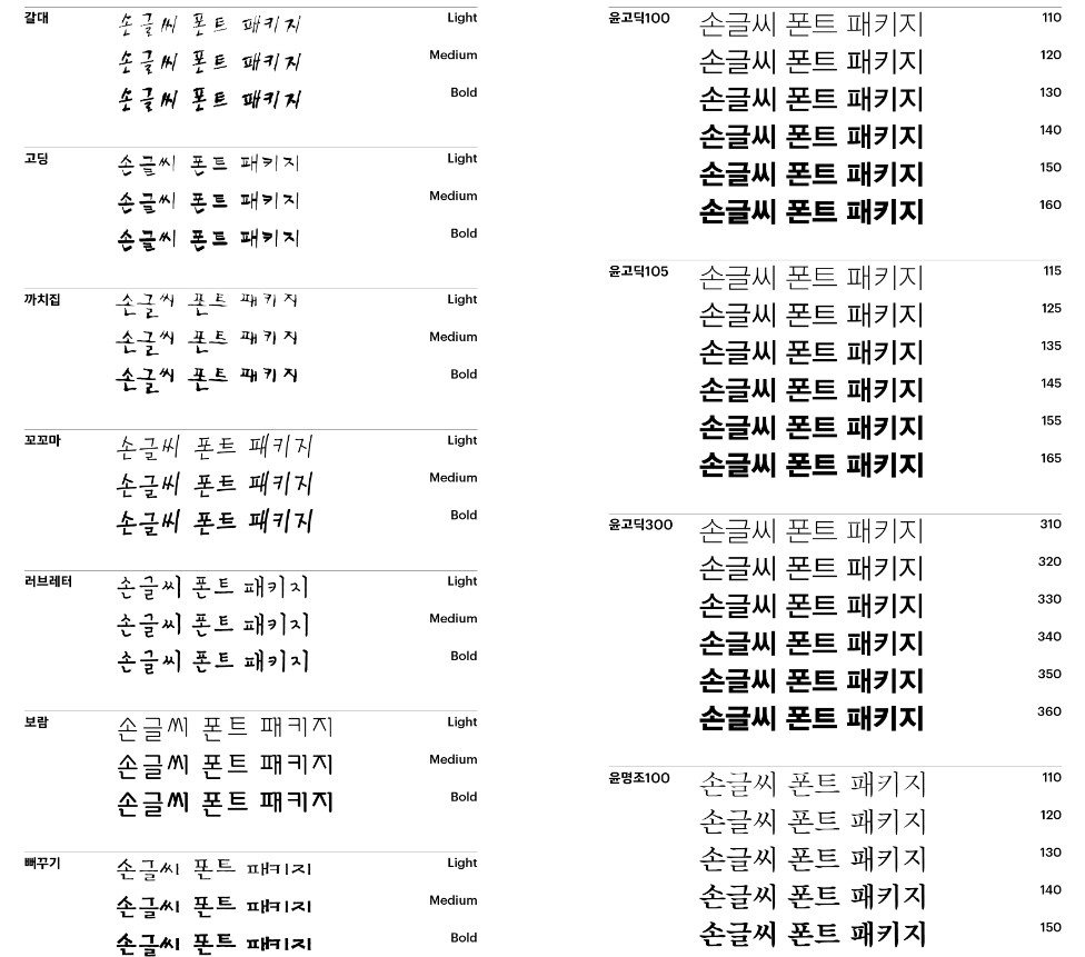 1) Yoon Gothic100 : 110,120,130,140,150,160