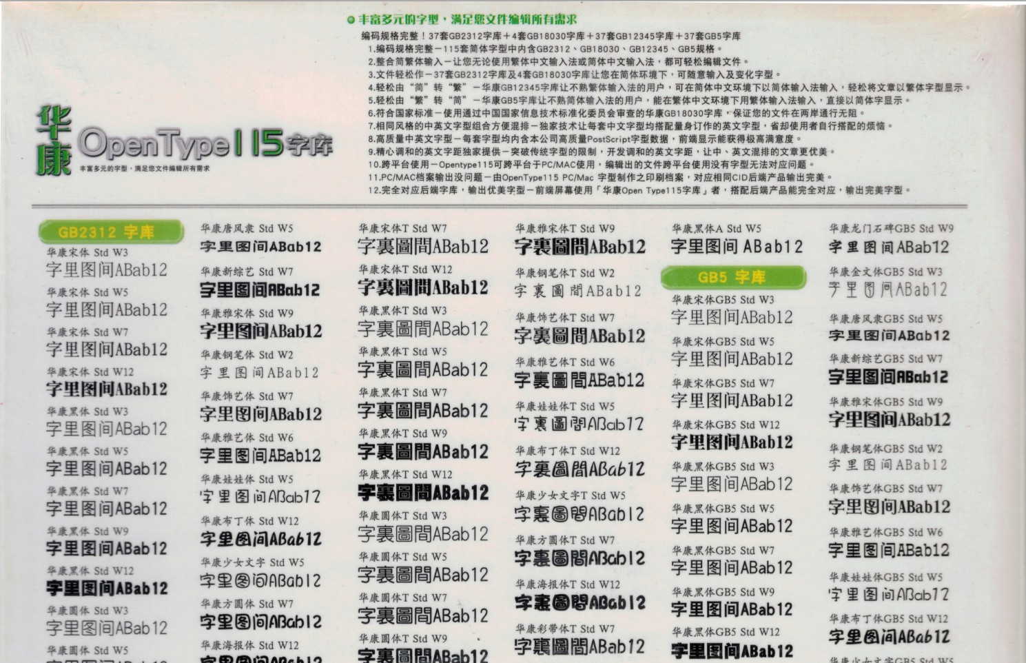 Song std W3, Song std W5, Song std W7, Song std W9, Hei std W3, Hei std W5, Hei std W7, Hei std W9, Hei std W12, JinWen std W3, Kai std W5, KanTingLiu std W9, TanLi std W5, ZongYi std W7, YaSong std W9, GangBi std W2, ShiYi std W7, ShouJin std W3, YaYi std W6, Song std W12, WaWa std W5, Yuan std W3, BuDing std W12, WeiBei std W7, Yuan std W5, ShaoNv std W5, Yuan std W7, FangYuan std W7, Yuan std W9, HaiBao std W12, CaiDai std W7, POP1 std W5, POP2 std W9, POP3 std W12, ZongYi std W9, liJinHei std W8, LongMen std W9